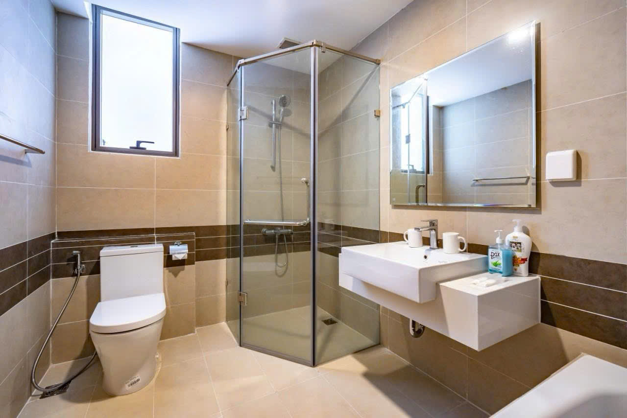 - 2 phòng tắm khép kín: Thiết bị vệ sinh cao cấp, máy nước nóng lạnh và đồ dùng cá nhân đầy đủ, đảm bảo sự tiện lợi cho mọi thành viên.